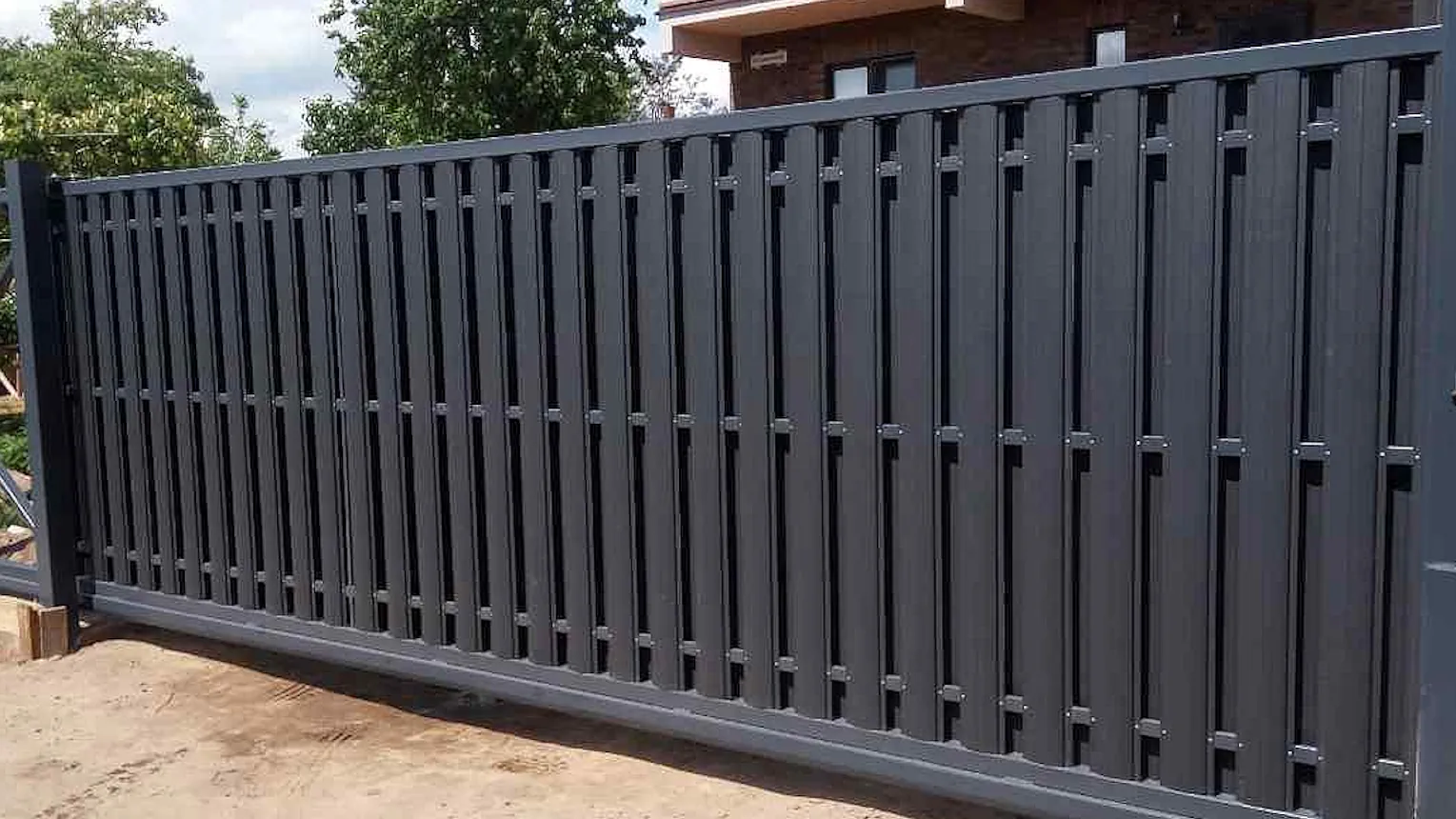 Откатные ворота из евроштакетника с автоматикой